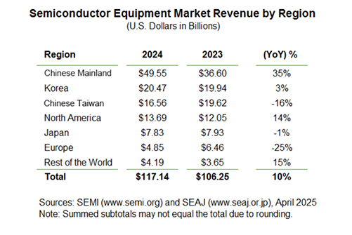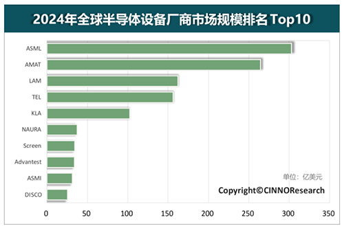 图 2024年全球半导体设备厂商市场规模排名Top10(来源:CINNO IC Research)