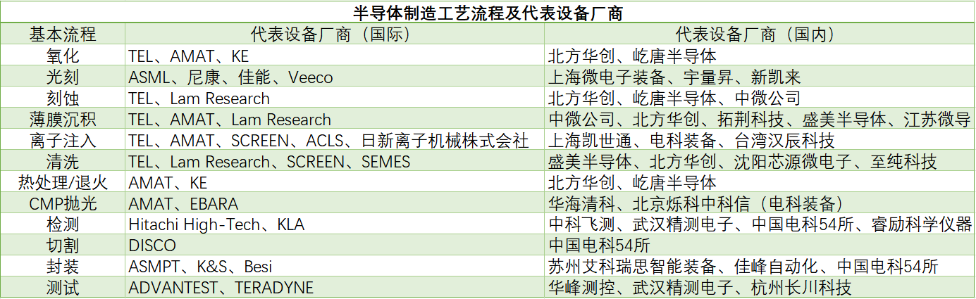 表1 半导体制造基本工艺流程及代表设备厂商