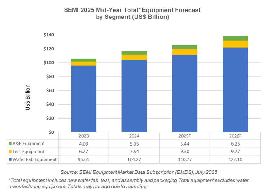 但重重挑战之下,半导体装备产业也展现出一系列积极的发展趋势。首先,随着AI、大数据、物联网等新兴技术的蓬勃发展,半导体市场需求持续扩张,为半导体装备产业带来了新的增长动力。尤其是AI领域对高性能计算芯片的旺盛需求,促使晶圆厂加速扩产和技术升级,进而拉动对半导体设备的采购需求。根据SEMI预测,2025年全球OEM(原始设备制造商)的半导体制造设备总销售额预计将创下1255亿美元的新纪录,同比增长7.4%。在先进逻辑、存储器及技术迁移的持续推动下,2026年设备销售额有望进一步攀升至1381亿美元,实现连续三年增长,这为半导体装备企业提供了广阔的市场空间。